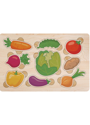 Дерев'яний пазл кольоровий Овочі Серія "Дерев'яний пазл-сортер кольоровий" ідеально підходить для вивчення різних овочів. Розвиває дрібну моторику, уяву, логічне мислення, увагу та пам'ять.