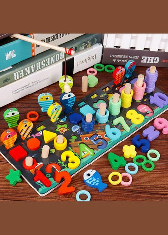 Гра розвиває пам'ять, мислення, дрібну моторику рук, координацію в просторі, сенсорику і просто доставляє масу задоволення. По методиці Монтесорі ПРИНЦИП ДІЇ : Ігрушка являє собою основу на стійкій підставці, на яке потрібно ловити рибку / знімати елементи при цьому вивчаючи їх зміст Знімая і вставляючи елементи на основу малюк знайомиться з формою і розміром предметів, запам'ятовує кольори, вивчає кількісний рахунок. МАТЕРІАЛ: Дерев'яні іграшки безпечні, не містять потенційно шкідливих компонентів, довговічні. Дотик натурального природного матеріалу благотворно позначається на психіці дитини, заспокоює і налаштовує на позитивний лад. РОЗМІР: 36 см. ВІК: +3 (дитині буде цікаво з 12м)