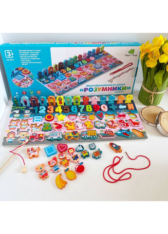 Гра розвиває пам'ять, мислення, дрібну моторику рук, координацію в просторі, сенсорику і просто доставляє масу задоволення. За методикою Монтессорі Принцип дії: Іграшка являє собою основу для стійкій підставці, на яке треба ловити рибку / знімати елементи при цьому вивчаючи їх зміст Знімаючи і вставляючи елементи на основу малюк знайомиться з формою і розміром предметів, запам'ятовує кольори, вивчає кількісний рахунок Комплектація: слова (укр), цифри, тварини, транспорт, шнурівка, риболовля (магнитна, рибки 6 шт, фігурки - родина 8шт) МАТЕРІАЛ: Дерев'яні іграшки безпечні, не містять потенційно шкідливих компонентів, довговічні. Дотик натурального природного матеріалу благотворно позначається на психіці дитини, заспокоює і налаштовує на позитивний лад Ігрове поле : 45 х 18см Розмір в упаковці: 46 х 18,5 х 4 см ВІК: 3 (дитині буде цікаво з 12м)