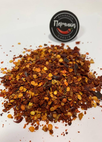 Перець подрібнений виробляється з дрібно подрібнених сушених плодів чилі-перцю і використовується в різних кулінарних традиціях. Властивості перцю чилі подрібненого: Гострота: Головною характеристикою перцю чилі є його гострота. Вона може варіювати від помірної до вкрай гострої залежно від виду чилі та його сорту. Гострота обумовлюється речовиною капсаїцином, яка є у плодах чилі. Аромат: Перець подрібнений має інтенсивний аромат, який може бути фруктовим, цитрусовим, димчастим або навіть солодкуватим. Цей аромат робить чилі подрібнений незамінною спецією у багатьох стравах. Застосування у кулінарії: Перець чилі подрібнений знаходить широке застосування для надання гостроти та аромату стравам: Мексиканська кухня: Це, мабуть, найвідоміше застосування подрібненого чилі. Він додається в такі страви, як чилі кон карне, енчіладас, сальса та гуакамоле. Тайська та індійська кухня: Чилі подрібнений використовується для створення гострих страв, таких як каррі та інші. Пікантні соуси: Він може бути доданий в соуси, щоб надати їм гостроти та аромату. Маринади: У ролі приправи для маринадів, перець чилі подрібнений робить м'ясо, рибу та овочі гострими та ароматними. Піца і паста: У деяких регіонах світу чилі подрібнений додається на піцу та в італійські пасти для надання їм гостроти та смаку.