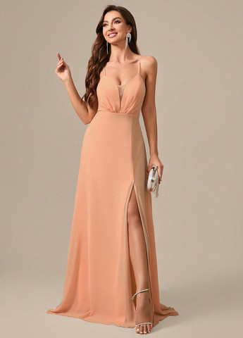 Матеріал Поліестер / Колір Персиковий / Фасон Грецьке, З відкритою спиною, З відкритими плечима / Довжина виробу Максі / Стиль Вечірній, Святковий