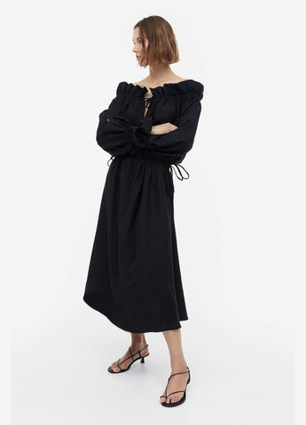 Довга сукня oversize вільного крою з м'якої саржі із суміші ліоцелу. Виріз горловини з відкритими плечима, оброблений оборкою, та глибокий виріз-замкова свердловина із зав'язками-спагетті спереду. Довгі рукави з гумкою та оборкою на манжетах. Зав'язки на стегнах, що зав'язуються з обох боків. На підкладці. ***Розмір - M Напівобхват пояса - 45,00 см Довжина рукава - 58,00 см Довжина виробу - 118,00 см Об'єм грудей - 118,00 см Напівобхват стегон - 78,00 см ***Розмір - XS Напівобхват пояса - 51,00 см Довжина рукава - 56,00 см Довжина виробу - 115,00 см Об'єм грудей - 106,00 см Напівобхват стегон - 80,00 см ***Розмір - S Напівобхват пояса - 48,00 см Довжина рукава - 57,00 см Довжина виробу - 115,00 см Об'єм грудей - 110,00 см Напівобхват стегон - 79,00 см ***Розмір - L Напівобхват пояса - 63,00 см Довжина рукава - 54,00 см Довжина виробу - 120,00 см Об'єм грудей - 140,00 см Напівобхват стегон - 90,00 см Можливе пошкодження бирки
