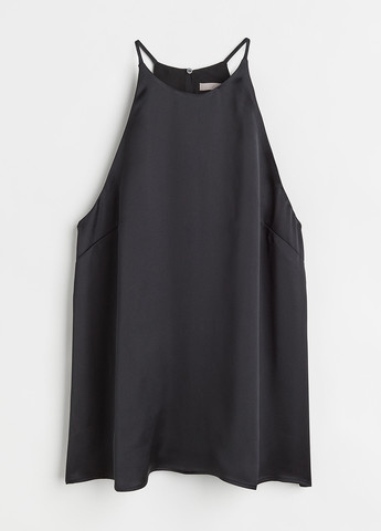 Атласний топ А-силуету невимушеного крою. Цей топ має вузький крій у верхній частині, лямки-спагетті та розріз із прихованим ґудзиком.