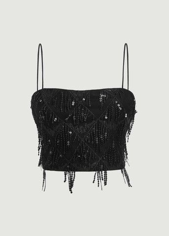 Колір Чорний / Матеріал Поліестер / Візерунок Однотонний / Декор Паєтки, Бахрома / Стиль Коктейльний, Кежуал