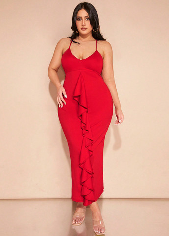 Матеріал Поліестер, Трикотаж / Колір Червоний / Фасон З відкритою спиною, Силуетна / Довжина виробу Максі / Стиль Вечірній, Коктейльний