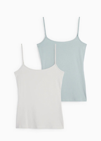 Базовий топ (комплект з 2 шт) з еластичного трикотажу, регульовані бретельки-спагеті. Довжина по спинці приблизно 58 см у розмірі S; довжина по спинці приблизно 60 см у розмірі L.