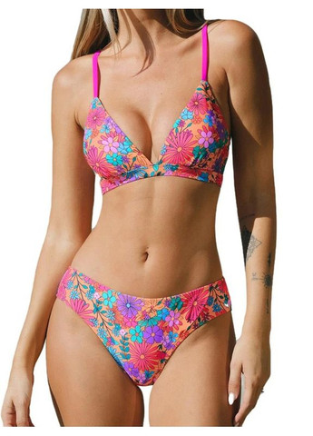 Розслабтеся біля басейну під час вашої наступної відпустки в цьому бікіні-комплекті, що включає топ із плетеними бретельками ззаду, круглим вирізом і регульованими бретельками-спагетті, а також пару двосторонніх плавок з однотонним і квітковим візерунком, плавки середньої посадки з регульованою зав'язкою. Про стиль чашок: зі знімними м'якими чашками.