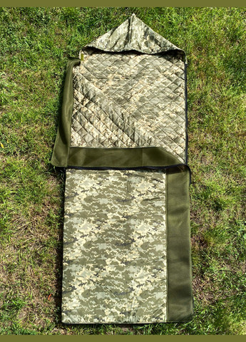 Тактичний спальник-ковдра літній військовий. ЗСУ Спальний мішок піксель мм14. Армійський спальник Легкий з москітною сіткою. Легкий і практичний мішок-ковдра для сну призначений для використання в екстремальних умовах навесні та влітку. Універсальний і надійний у використанні, а також має компактні розміри й малу вагу всього 900 г, що робить його зручним для перенесення. В якості наповнювача використовується холофайбер (синтепон) щільністю 150 г/м2. Спальний мішок чудово зберігає тепло під час вітряних дощових ночей, але в той же час пропускає повітря в найспекотнішу погоду. Для підвищення комфорту під час сну, спальний мішок оснащений капюшоном з зручною системою затягування та антимоскітною сіткою, виконаною з 3D-сітки на пенополіуретані. Надувна подушка в подарунок Конструкція спального мішка включає три шари: Зовнішній матеріал: Високоякісна синтетична тканина Оксфорд, виготовлена і оброблена гідрофобним препаратом. Цей матеріал не пропускає вологу і захищає від холодного вітру. Щільність тканини становить 130 г/м². Утеплювач: В спальному мішку використовується синтепон товщиною 2 см. Він забезпечує комфортну температуру сну від +10 градусів і вище. Внутрішній матеріал: Для внутрішнього шару застосовується міцний антиалергенний нейлон щільністю 110 г/м². Розмір: Спальник: Ширина - 80 см, Довжина - 215 см Спальник-одіяло: Ширина - 160 см, Довжина - 212 (без капюшона 172 см) Склад: Наповнювач - Холофайбер (синтепон), який швидко відновлює свою форму після стиснення, має кращу теплоізоляцію і служить довше ніж аналоги. Тканина - Оксфорд з водовідштовхувальною пропиткою. 3D-сітка - на поролоні (сітка неопренова) - складається з тривимірної плетеної сітки з міцного нейлону, що утворює комірки різного розміру у зовнішньому і внутрішньому шарах, а також тонкого поролону. Особливості спального мішка: Спальний мішок військового типу оснащений якісною блискавкою, виробленою в Україні. Блискавка має двосторонній бігунок, що дозволяє відкривати мішок з зовнішньої або внутрішньої сторони. Капюшон: Спальний мішок оснащений капюшоном, який дозволяє повністю закрити мішок, залишивши невелику щілину для потоку свіжого повітря. Сумка для транспортування: Комплект поставки включає сумку для зручного транспортування спального мішка з водовідштовхувальним пропиткою. Сумка оснащена лямкою зі стропи діаметром 2,5 мм і має компактні розміри в складеному вигляді: 35х25 см. Можливий опт і Дроп.