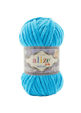Товста фантазійна плюшева пряжа Alize Velluto (Алізе Веллуто). Склад: 100% мікрополіестер. Вага мотка: 100 грам. Орієнтовна довжина - 68 метрів. Товщина нитки - 0,8 см. Виробник: Alize, Туреччина. Ціна вказана за 1 моток. Рекомендований розмір спиць: 8-9 мм. Рекомендований розмір гачка: 8-10 мм. Пряжа Alize Velluto — це об’ємна, дуже м’яка плюшева поліестрова нитка для в'язання, схожа на оксамит. Має щільну та надзвичайно приємну на дотик структуру. Вироби з неї виходять теплими, м’якими та пухнастими. Пряжа відмінно зберігає форму у виробах та підходить для в’язання великих іграшок та елементів інтер'єру. Використання: Товсту плюшеву пряжу Алізе Веллуто використовують для в'язання ковдр, декоративних подушок, пледів, об'ємного одягу та головних уборів, а також м'яких плюшевих іграшок (зокрема амігурумі). Ідеальна для в’язання товстими спицями чи гачком як для початківців, так і для досвічених майстрів.
