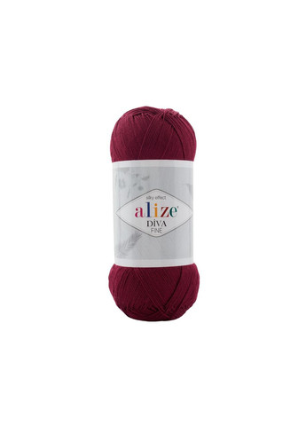 100% мікрофібра акрил, 100г - 600м Alize Diva Fine Forever - класична пряжа, міцна та м'яка. Відмінне скручування нитки, має гарний блиск і дуже шовковиста на дотик. Нитка рівна, ніде не кудлатить, а полотно виходить рівне і акуратне. Це стовідсоткова мікрофібра, але дуже гарної якості. Пряжа призначена для в'язання літніх і весняних речей, а також для в'язання серветок, скатертин і чудово підійде для спиць і гачка. Велика різноманітність кольорів та відтінків від спокійних до яскравих дозволяє підібрати пряжу для в'язання виробів на будь-який смак. Речі з Alize Diva Fine виходять дуже красивими і при цьому комфортними в носінні. Для створення ошатних речей чудово комбінується з ідентичною пряжею з люрексом Після прання виріб відмінно тримає форму, не вигоряє на сонці і відмінно прасується. Нитка профарбована добре і абсолютно не линяє.
