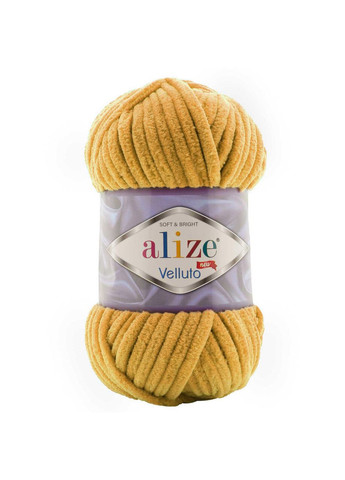 Товста фантазійна плюшева пряжа Alize Velluto (Алізе Веллуто). Склад: 100% мікрополіестер. Вага мотка: 100 грам. Орієнтовна довжина - 68 метрів. Товщина нитки - 0,8 см. Виробник: Alize, Туреччина. Ціна вказана за 1 моток. Рекомендований розмір спиць: 8-9 мм. Рекомендований розмір гачка: 8-10 мм. Пряжа Alize Velluto — це об’ємна, дуже м’яка плюшева поліестрова нитка для в'язання, схожа на оксамит. Має щільну та надзвичайно приємну на дотик структуру. Вироби з неї виходять теплими, м’якими та пухнастими. Пряжа відмінно зберігає форму у виробах та підходить для в’язання великих іграшок та елементів інтер'єру. Використання: Товсту плюшеву пряжу Алізе Веллуто використовують для в'язання ковдр, декоративних подушок, пледів, об'ємного одягу та головних уборів, а також м'яких плюшевих іграшок (зокрема амігурумі). Ідеальна для в’язання товстими спицями чи гачком як для початківців, так і для досвічених майстрів.
