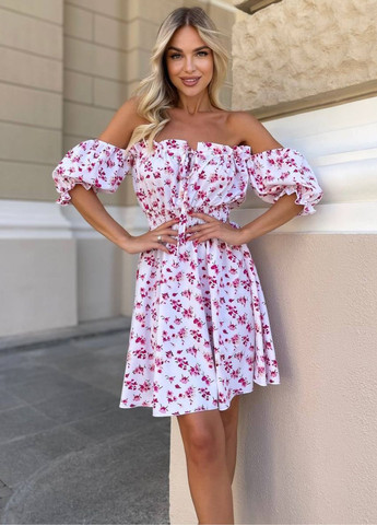 Ця жіноча міні-сукня ідеально підходить для літніх вечорів або пляжних прогулянок. Виготовлене з легкої тканини, воно забезпечує комфорт і чудово виглядає на будь-якій фігурі. Сукня має пишні рукави, які додають жіночності та легкості образу. Спідниця сонце клеш створює ефект легкої грайливості та підкреслює витончені ноги. Рюші надають додаткової вишуканості та шарму цієї сукні. Будьте в центрі уваги і виглядайте стильно з цією унікальною міні-сукнею!