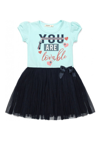 U0657261 Зріст: 110 см, 116 см, 128 см, 134 см, 140 см Тип: З коротким рукавом, сукня, Повсякденне Вік: 10 років Сезон: тепла весна, літо, тепла осінь Довжина виробу: 68 см Склад матеріалу: 95% бавовна, 5% еластан Колір: різнокольоровий, м'ятний, темно-синій Візерунок: малюнки та написи Застібка: без застібки Декорування: стрази, бант, глітерне напилення, принтовані слова Кишені: без кишень Кількість в упаковці: 1 шт Виробник: Breeze Модель: з фатиновою спідницею Гарантія, міс: 0 Бренд: Breeze Мила трикотажна сукня «YOU ARE lovely» Ніжна двокольорова сукня з коротким рукавом - «ліхтариком» та м'якою спідницею фатинової для маленької модниці Сукня пошита з м'якого, бавовняного турецького трикотажу, з додаванням невеликого % еластану для підтримання форми виробу. Трикотаж гарної якості, м'який і дуже приємний на дотик. Верх сукні світлого м'ятного кольору, прикрашено на грудях принтовими написами, красиво оформленими стразами, що переливаються, і глітерним напиленням. Кругла горловина окантована еластичною трикотажною бейкою. Спідниця сукні двошарова, темно-синього кольору, прикрашена пришитим бантиком із атласної стрічки Нижня спідниця – бавовняний трикотаж, верхня (довша за нижню спідницю) – м'який, задрапований фатин, в тон нижній спідниці. Лінія з'єднання верху сукні зі спідницею не завдасть незручностей при перевдяганні, оскільки вона еластична і добре тягнеться завдяки вставленій резиночці. Сукня чудово виглядає, чудово носиться і, без жодних сумнівів, сподобається Вашій дитині Прати та прасувати, бажано, з виворітного боку