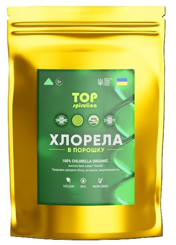 Хлорела — зелена мікроводорость, популярний суперфуд, що містить багато хлорофілу, органічного заліза, цинку, каротиноїдів та інших корисних речовин. Має детокс-ефект, сприяє позбавленню від зайвої ваги. Усуває дефіцит заліза, живить органічним кальцієм і магнієм. Оздоровлює організм і зміцнює імунітет. Вміст білка — 55%. Джерело хлорели – природний ареал, гірське озеро (висота 1500 м) Ченхай, екологічно чисте місце, далеко від цивілізації. Головна особливість хлорели – вона вирощена без використання агрохімії, на поживних речовинах з води озера. Розбита стінка клітини хлорели і щадний режим сушіння забезпечують максимальну користь. Рекомендована всім, хто піклується про своє здоров'я: вегетаріанцям і тим, хто харчується традиційно, вагітним і годуючим, спортсменам, студентам і розумовим працівникам. Обмежень немає, крім індивідуальної непереносимості. Як хлорела впливає на організм: 1) Насичує організм вітамінами і мінералами 2) Запускає процеси очищення від шлаків, токсинів і хімікатів 3) Прискорює регенерацію клітин організму, омолоджує 4) Бореться з дегенеративними процесами 5) Покращує травлення, відновлює симбіотну мікрофлору 6) Зупиняє розвиток раку 7) Знижує вплив куріння та алкоголю на організм Хлорела – швидкозасвоюваний продукт, тому її краще приймати натщесерце за 15-25 хв до їжі. При захворюваннях шлунково-кишкового тракту вживайте з їжею, не натщесерце. Максимальний ефект досягається при щоденному прийомі 5-10 г на день. Спосіб приготування: 1) з водою – змішати хлорелу з 50-100 мл води, дати настоятися 5-10 хвилин і потім ретельно перемішати; 2) у смузі – додати хлорелу до фруктів або соків у блендері; 3) у салаті – заправити хлорелою овочевий салат.