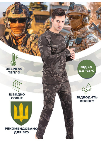 Комплект термобілизни Onepro пошитий з дуже якісної тканини, в складі якої: 90% поліестер, 10% спандекс. Дуже приємна і комфортна, забезпечує максимальний захист від холоду та вітру. Термобілизна гарантує високий комфорт при носінні завдяки вдосконаленому фасону і хорошій еластичності. Застосовуваний у виробництві матеріал швидко виводить вологу назовні, завдяки чому Ви відчуває себе комфортно. Температурний режим від +5 до -25 ° C. Термобілизна відмінно підходить для школи, відпочинку на природі, вечірніх прогулянок. Відмінний варіант для прохолодних осінніх або зимових днів. Основні переваги нашої термобілизни: - Відповідає формі тіла, ідеально підходить для нашарування. - Матеріал приємний на дотик і зручний у використанні. - Висока еластичність і покриваність тканини. - Швидке відведення поту, вологи з сухої шкіри. - Дихаючий матеріал регулює температуру тіла. - Призначений для спортсменів і повсякденного використання.