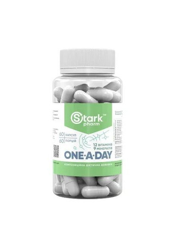 Мультивітаміни на кожен день One-a-Day Stark Pharm, 60 таблеток One-a-Day Stark Pharm — це щоденний мультивітамінний комплекс, розроблений для підтримки життєвої енергії, імунітету та загального здоров’я. Ідеально підходить для сучасного темпу життя, забезпечуючи організм усіма необхідними мікронутрієнтами в одній зручній таблетці на день. Основні характеристики: Форма: таблетки Кількість в упаковці: 60 таблеток (курс на 2 місяці) Рекомендована доза: 1 таблетка на добу Без глютену та ГМО Переваги комплексу: Забезпечує добову потребу в основних вітамінах і мінералах Підтримує імунну систему, серце та мозок Покращує рівень енергії та опір стресу Допомагає боротися з втомою і підтримує тонус Рекомендації щодо застосування: Приймайте 1 таблетку на день після їжі, запиваючи склянкою води. Курс прийому — не менше 60 днів для досягнення повноцінного ефекту. Протипоказання: Індивідуальна чутливість до компонентів. Не рекомендовано дітям, вагітним і жінкам у період лактації без консультації з лікарем. Опис бренду: Stark Pharm — вітчизняний виробник, який спеціалізується на якісних біологічно активних добавках та спортивному харчуванні. Продукція виготовляється відповідно до міжнародних стандартів ISO та проходить лабораторний контроль. Чому саме One-a-Day Stark Pharm: Цей мультивітамінний комплекс стане щоденною підтримкою вашого здоров’я, зручний у застосуванні, збалансований за складом та ідеально підходить для чоловіків і жінок будь-якого віку. Замовляйте One-a-Day вже сьогодні — інвестуйте в своє здоров’я!
