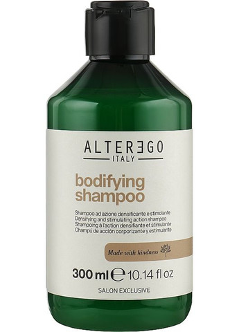 Ви мрієте відростити локони, але через ламкість, сухість і пошкоджень нічого не виходить? В такому випадку у вашому б'юті-арсеналі має з'явитися спеціальний шампунь для стимуляції росту волосся і відновлення локонів по всій довжині. Б'юті-продукт італійського бренда Alter Ego ретельно очищає волосся і шкірний покрив голови від різних забруднень, усуває ламкість і покращує стан тонких локонів. Застосування шампуню у поєднанні з кондиціонером і спреєм серії Bodifying забезпечить комплексний догляд за волоссям, що допоможе зробити його більш сильним, здоровим і сяйним. Особливості Alter Ego Bodifying Shampoo:- не містить сульфатів, парабенів, вазеліну;- допомагає зберегти насиченість кольору пофарбованих локонів;- підходить для щоденного застосування;- зміцнює локони і відновлює їхній природний блиск;- містить 92 % натуральних компонентів.