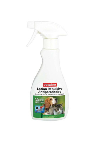 Переваги: Натуральний спрей для собак та котів, цуценят та кошенят. Спрей ефективно відлякує кровосисних паразитів: бліх, комарів, кліщів. Препарат може використовуватися для обробки шкіри та вовни у дорослих котів та собак, цуценят та кошенят старше 3-х місяців. Препарат виготовлений у формі спрею на основі виключно натуральних компонентів – екстрактів піретруму, маргози та лаванди. Екстракт лаванди у складі спрею: має ранозагоювальну дію на шкіру, має антибактерицидні властивості, має антигрибкові властивості. Нанесений на шкіру тваринного препарат: знижує свербіж та роздратування від укусів, покращує зовнішній вигляд вовни та надає легкий, дезодоруючий ефект. Об'єм використання препарату залежить від розмірів тварини. Тривалість захисту вихованця після обробки спреєм – до 7 днів. Після закінчення дії препарату процедуру нанесення слід повторити. Препарат використовують протягом усього періоду лікування тварини під час зараження паразитами або як профілактика. Склад: екстракт маргози 1,2 г/л, екстракт піретруму 5 г/л, екстракт лаванди 6 г/л, інертний наповнювач. Дозування: Кількість спрею залежить від розміру тварини. Обмежень щодо тривалості використання немає. Протипоказання: Спрей не слід застосовувати: для хворих тварин, для одужуючих тварин, для тварин, які страждають на нудоту або блювоту, для тварин, що страждають від болю в шлунку, для тварин, що мають кишкову непрохідність (запори), для тварин, які мають значні пошкодження шкіри. Використовуйте препарат з обережністю для тварин – алергіків, оскільки спрей містить природні екстракти та ефірні олії, які можуть спровокувати виникнення алергічної реакції (наприклад, подразнення шкіри, свербіж). Не застосовувати тваринам молодше 12-ти тижневого віку. При ознаках подразнення шкіри припинити застосування препарату і звернутися до лікаря. Після роботи із препаратом ретельно вимийте руки водою з милом. У разі потрапляння препарату в очі чи ніс негайно промити великою кількістю води. Спосіб застосування: Добре збовтати вміст флакона. Ретельно обробити спреєм у тваринного боку, внутрішній бік стегон, живіт, хвіст, кінчики вух. Наносити спрей потрібно: рухаючись від хвоста до голови, спрямовуючи струмінь проти вовни, втираючи рідину. Не слід спрямовувати спрей в очі, ніс, вуха, пащу та на геніталії тварини. Через 5 хвилин після закінчення обробки тварину потрібно насухо витерти рушником. Препарат починає максимально діяти вже через кілька годин після обробки та забезпечує захист тварини на один тиждень. Після закінчення цього терміну обробку повторюють за цією ж схемою. Зберігання: Зберігають спрей у фабричній закритій упаковці. Зберігають препарат у сухому, захищеному від прямих сонячних променів місці. Зберігати флакон потрібно окремо від харчових продуктів, напоїв та кормів для тварин. Зберігати спрей за кімнатної температури. Зберігати препарат у недоступному для дітей місці. Характеристики: Форма випуску: флакон - спрей Фасування: 250 мл