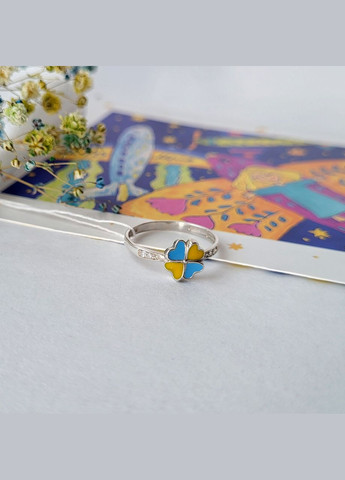 Кільце Клевер Срібло 925 проба Родоване срібло Вставка камінців циркон білого кольору й емаль Діаметр Квітка 9 мм розмір 17.5 вага 1.69г Виробництво Україна На всіх ювелірних виробах стоїть проба намету України, що підтверджує матеріал виробу — і законність їх реалізації на території України та іменник виробника, який гарантує відповідність ювелірних виробів вимогам ГСТУ 3527-97 "Виробу ювелірні з дорогоцінних матеріалів