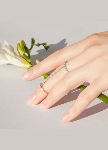 Срібна каблучка на фалангу Подвійна із камінцями вставками та ланцюжком - дуже оригінальна модель. Ця прикраса унікальна, оскільки дозволяє створювати кілька образів. Способів її носіння декілька: На двох пальчиках, як звичайні каблучки. Ви надягаєте срібну каблучку з фіанітами на один пальчик, а каблучку з хрестиком на сусідній, який вам зручніший. Оскільки обидва профілі незамкнені, ви можете злегка (всього на половину розміру) коригувати габарити. На верхній та нижній фаланзі одного пальця одночасно. Оскільки профіль з камінням вставками трохи більший за розміром, його слід опустити за суглоб на пальці, приблизно до середини, тоді друга каблучка з хрестом - займе традиційне місце на верхній фаланзі. Ланцюжок дозволить їм тримаються разом, при згинанні та розгинанні пальчика. На верхній або нижній фаланзі одного й того ж самого пальця одночасно. Все залежить від вибраного розміру. Ви можете з'єднати срібні обручки разом, тим самим перетворюючи прикрасу у звичайний варіант каблучки. У такому випадку модель також виглядатиме цікаво, за рахунок кількох композиційно різних елементів. Купити каблучку на фалангу подвійну ви можете у наступній розмірній сітці: 14, 14,5, 15, 15,5, 16, 16,5, 17, 17,5, 18, 18,5. Така чудова фантазія від наших ювелірних майстрів – 100% попадання у всі сучасні тренди. Оскільки доповнити цю прикрасу можна й сережками з ланцюжком та кольє з таким же тоненьким ланцюжком чи хрестиками, або подвійним срібним кольє, а також браслетом на тонкому ланцюжку та іншими аксесуарами нашої великої срібної колекції. Якщо ви досі сумніваєтеся із вибором розміру, обов'язково зверніться до наших консультантів.