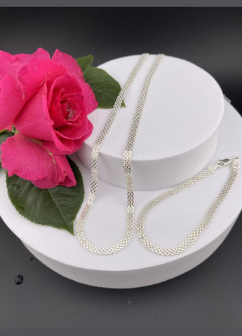 Елегантний срібний набір з ланцюжка та браслета плетива "Машинний Бісмарк" виробництва "Аргентум". Цей набір включає стильний ланцюжок та браслет, виготовлені з високоякісного матеріалу. Ви можете обрати довжину браслета відповідно до свого розміру. В наявності браслети - 18 см, 18,5 см, 19 см та 19.5 см. Цей вишуканий набір прикрас, який стане ідеальним доповненням до будь-якого образу. Надійна застібка-карабін забезпечує легке та безпечне застібання, що забезпечить надійність виробу. Цей набір стане чудовим подарунком для жінки, яка цінує елегантність та розкіш, і додасть блиску будь-якому образу. Він підійде як для повсякденного носіння, так і для особливих подій, підкреслюючи вашу неповторність та стиль. До виробу додається бірка та зроблене клеймування. Срібний виріб виготовленим з дотриманням ДСТУ 3527-97