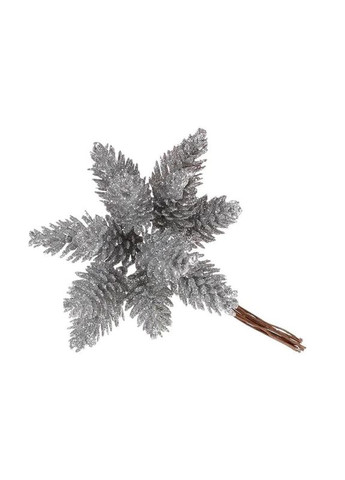 Штучний пучок з шишок 12 см Флористичний пучок для декору з глітером Сріблястий Декоративна гілка —це чарівний, компактний та дуже фактурний елемент декору, ідеальний для додавання зимових акцентів у мініатюрні композиції. Пучок завдовжки 12 см складається з 12 маленьких декоративних шишок, які об'єднані дротяною або текстильною основою. Шишки повністю пофарбовані у срібний колір. Цей аксесуар є ідеальним для деталізованого декору, флористичних вставок, прикрашання свічників, оформлення подарунків або як точковий елемент у віночках. Характеристики: Тип товару: Декоративний пучок Довжина гілки: 12 см. Кількість елементів: 12 міні-шишок. Колір: Сріблястий Форма: Шишки Оздоблення: покрите глітером Призначення: Зимовий, новорічний, весільний декор, міні-флористика Переваги: Ідеальний розмір для деталізованих робіт, де великі елементи недоречні. Форма шишки додає композиції природної, рустикальної текстури. Сріблястий колір створює відчуття свіжого снігу та чистоти, чудово поєднується з будь-якою гамою. 12 шишок в пучку готові до використання, що значно економить час. Може використовуватися як для різдвяного, так і для весільного декору чи тематичного оформлення.