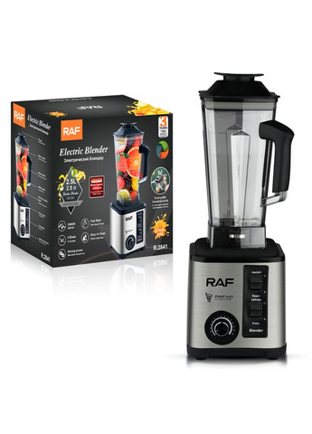 Блендер 2400W побутовий кухонний стаціонарний 2.5 л RAF R.2841 Кухонний блендер RAF 2841 — це чудовий стаціонарний блендер, здатний подрібнити великі обсяги продуктів за кілька секунд. Маса всередині глечика ретельно подрібнюється в горизонтальному та вертикальному напрямках. Кухонний блендер має потужність 2400 Вт, завдяки чому можна підбирати режим подрібнення для кожного продукту. Завдяки багатому функціоналу RAF швидко покришить овочі для салату або миттєво перетворить на приготований пюре суп. У блендері зручно робити різні соуси, супи, смузі та інші корисні страви. Блендер виготовлений із якісних матеріалів і ні над чим не поступається знаменитішим аналогам, а у своєму ціновому сегменті не має конкурентів. Найкращий на ринку! Приготування здорових коктейлів і смузі, спортивних протеїнових напоїв, дитячого харчування пюре, фруктового та овочевого соку, подрібнення кави, горіхів, спецій і боби. Ви можете зробити все це на кухні дому професійно за допомогою цього багатофункціонального персонального блендера. Переваги: Небитка термостійка склянка на 2,5 літра з екологічного скла, витримує лід і гарячі рідини.; Двигун потужністю 2400 Вт; Імпульсний режим; Завдяки своїй формі склянка маса циркулює всередині у вертикальному та горизонтальному положенні, забезпечуючи ретельне та якісне подрібнення; Гострі ножі з лазерним заточуванням із високоякісної неіржавкої сталі; В універсальному блендері зручно робити різні соуси, супи, смузі та інші корисні страви. Характеристики: Виробник: RAF Мстільність: 2400 Вт Об'єм: 2,5 л Тип: стацсіонал Тип керування: електронне Матеріал: нержавіюча сталь Матеріал чаші блендера: загартоване скло Леза: нержавіюча сталь Кількість швидкостей: 1 Імпульсний режим для оброблення особливо жорстких продуктів: так; Живлення: від мережі 220–240V 50Hz Довжина дроту: 120 см Розмір: 38*23*32 см Комплектація: Блендер RAF Чаша скляна Кришка для чаші Штовхач Інструкція Паковання від виробника
