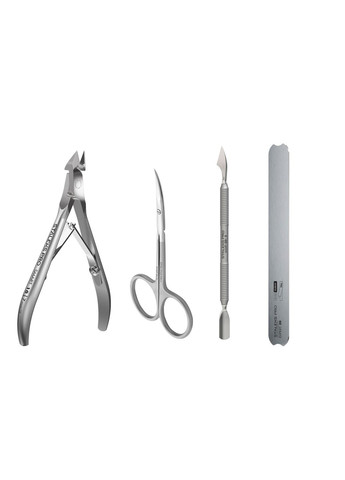 Mani Start Home — базовий набір для домашнього манікюру: чистий зріз кутикули, акуратне відсунення і гігієнічна база під абразив. Інструменти з матовою нерж. сталі виглядають охайно та впевнено лежать у руці: тонкі вигнуті леза ножиць, компактні кільця, прямі укорочені ручки кусачок, рифлена ручка пушера і полірована металева основа для файлів. Кусачки SMART 10 — NS-10/7 (7 мм) прямі ріжучі кромки під нахилом, ріжуча частина з виступом; прямі вкорочені ручки, стильна матова поверхня; професійна ручна заточка, м’який рівномірний хід завдяки поліруванню шарніра; для класичного манікюру та як допоміжний інструмент при апаратному манікюрі/педикюрі. Ножиці SMART 10 TYPE 3 — SS-10/3 завужені тонкі леза, класичний вигин із плавною лінією різу; класичний розмір кілець, легкий м’який хід; додатковий захист від корозії. Лопатка SMART 50 TYPE 2 — PS-50/2 (пушер округлий вузький + «топірець») пушер піднімає та відсуває кутикулу, «топірець» очищає нігтьову пластину від птеригію; двостороння професійна ручна заточка «топірця»; рифлена, приємна на дотик матова ручка для надійної фіксації; нержавіюча сталь; рекомендовано для манікюру і педикюру. Основа для пилки EXPERT 20 — MBE-20 високоякісна нержавіюча сталь, гладка полірована поверхня; спеціальні виїмки для легкого зняття клейового файлу після роботи; дозволяє виконувати безпечний манікюр із одноразовими абразивами; багаторазове використання. Для кого: домашні користувачі, які хочуть акуратно й безпечно доглядати за нігтями без зайвих інструментів. Додайте Mani Start Home у кошик і робіть охайний манікюр удома — просто та гігієнічно.