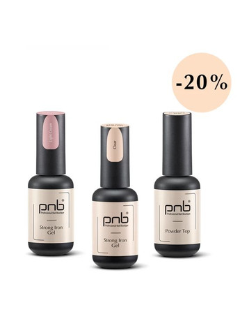 Стартовий набір архітектора манікюру PNB "Magic Power" 3 в 1 Спробуйте потужну силу професійного манікюру з набором PNB "Magic Power" 3 в 1! Цей комплект включає все необхідне для створення ідеального манікюру, забезпечуючи стійке покриття та тривале носіння без тріщин та відшарування. Завдяки знижці в 20%, це найкраща пропозиція для тих, хто цінує якість та економію! UV/LED Strong Iron Gel PNB, Light Cream, 8 мл – гель натурального світло-бежевого відтінку. Ідеальний для створення нюдового манікюру та зміцнення нігтьової пластини. UV/LED Strong Iron Gel PNB, Clear, 8 мл – кристально-прозорий гель для зміцнення та моделювання нігтів. Легко знімається без пошкоджень. UV/LED Powder Top PNB, 8 мл – топ з ефектом матової бархатистості та посиленою міцністю. Зберігає еластичність та вишуканість покриття до трьох тижнів. Цей набір створений для професіоналів та любителів манікюру, хто цінує бездоганний вигляд нігтів та довговічне покриття. Забувайте про часті корекції та насолоджуйтесь розкішним манікюром, який радуватиме вас цілий місяць! Уявіть, як легко та швидко ви зможете досягти ідеального манікюру вдома або в салоні, використовуючи якісні продукти PNB. Цей набір – ваш найкращий союзник у боротьбі за красу та здоров'я нігтів без шкоди для їхнього стану! Не проґавте свій шанс! Купіть набір "Magic Power" зі знижкою 20% зараз і насолоджуйтесь професійним доглядом за нігтями за доступною ціною!