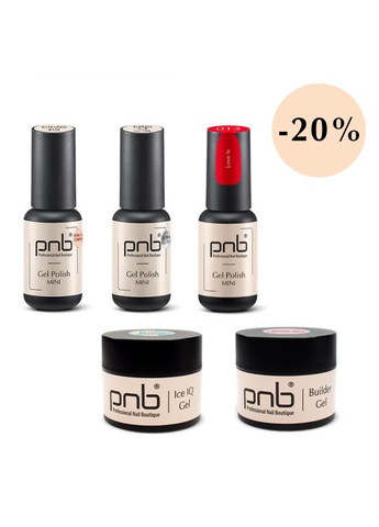 Набір стартовий гель-лаків PNB "Super Kit" 5 в 1 Розкрийте секрет бездоганного манікюру з набором PNB "Super Kit"! Цей комплект створено для справжніх поціновувачів ідеального покриття. Він включає все необхідне для довготривалого та стильного манікюру, який підкорить будь-яке око! У набір входять: UV/LED Extra Pro Base PNB, 4 мл – Професійна каучукова база з кератином, яка забезпечує ультрастійкий манікюр. Її гіпоалергенна формула створює баланс між здоров’ям нігтів та стійкістю покриття, забезпечуючи гнучкість і міцність нігтів. UV/LED Express Top PNB, 4 мл – Фінішне покриття без липкого шару, яке додає мокрий блиск та забезпечує еластичність і швидке висихання. Підходить для нанесення втирок і не містить UV-фільтрів. UV/LED Builder Gel PNB, Natural Pink, 5 мл – Гель для моделювання натуральних нігтів з відмінними властивостями самовирівнювання. Ідеальний для створення природного вигляду і легкого нарощування. UV/LED Ice IQ Gel PNB, Crystal Diamond, 5 мл – Прозорий гель з фольгованими частинками гліттеру для ефектного дизайну. Додає блиску та святковий вигляд вашому манікюру. UV/LED Gel Polish PNB mini 013, 4 мл – Червоно-романтичний гель-лак «Love is», який приверне погляди і додасть спокусливості вашому образу. Має стійке покриття, яке не тріскається і швидко висихає. Використання: Цей набір стане вашим незамінним помічником для створення ідеального манікюру з довготривалим ефектом. Завдяки знижці 20%, ви отримуєте не тільки якісні продукти, але й можливість зекономити. Відкрийте нові горизонти для вашого манікюру вже сьогодні! Замовляйте набір прямо зараз зі знижкою в один клік! Не пропустіть шанс оновити свою колекцію професійних засобів для манікюру.