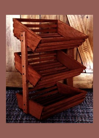 Дерев’яний стелаж для зберігання овочів і фруктів.