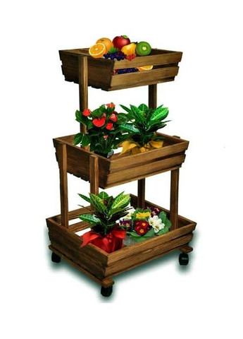 Дерев’яний стелаж для зберігання овочів і фруктів.