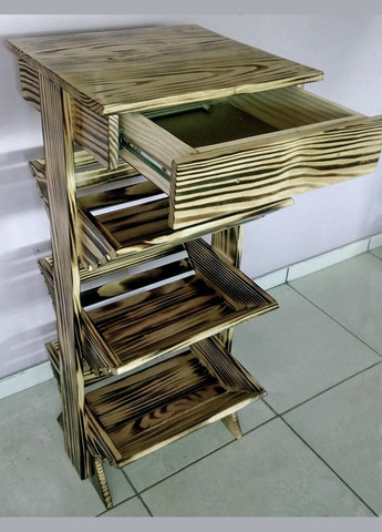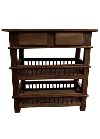 Дерев’яний стелаж для зберігання овочів і фруктів.