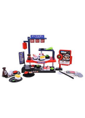 Ігровий набір Країна Іграшок Суши бар дозволяє дитині відчути себе шеф-кухарем або продавцем суші-бару. Комплектація: стелаж; каса; гроші; кредитна карта; 3 тарілки; соусниця; палички; соус васабі; роли. Набір має світлові ефекти, ліхтар над баром світиться. Він стимулює сюжетно-рольові ігри, розвиває фантазію, увагу та навички обслуговування.Ліхтарик працює від 2 батарейок AG13, які входять в комплект. Касовий апарат працює від 2 батарейок типу АА (не входять в комплект) Розмір іграшки: 43 х 11 х 28 см. Рекомендовано для дітей від 3-х років.