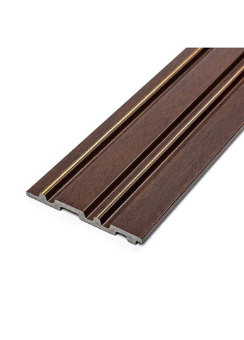 Стінові рейки WPC Опис: Стінові рейки WPC – будівельний матеріал для внутрішнього оздоблення, що імітує натуральну деревину. Фактура: гладка, імітація дерев'яної рейки Рейки складаються з наступних шарів: Полімерний шар, що захищає від потертостей та дрібних механічних пошкоджень, забезпечує довговічність використання, а УФ захист допомагає запобігти вигоранню, зберігаючи колір декоративного шару насиченим, за рахунок чого рейка довго має свій первісний естетичний вигляд. Декоративний шар: плівка з кольоровим друком високої роздільної здатності, яка повністю імітує фактуру природних матеріалів, завдяки чіткому та деталізованому зображенню. Основний шар WPC: є композитним матеріалом, який поєднує в собі деревні волокна (або стружку) з полімерними матеріалами, що забезпечує матеріалу міцність, стійкість до вологи і стійкість до впливу зовнішнього середовища. Температурний режим: від -50 º до +80 º С Застосування: внутрішні оздоблювальні роботи: декорування стін у всіх видах житлових приміщень (кухня, вітальня, дитяча або спальня, вхідна група) та комерційних приміщень (офісні приміщення, зони рецепцій, магазини, салони краси або фітнес-центри), декорування меблів, дверей та інших рівних поверхонь. Властивості та переваги матеріалу: Стійкість до вологи: матеріал WPC має високу стійкість до впливу вологи, не набухає і не деформується. Стійкість до гниття та комах: на відміну від деревини, WPC не схильний до гниття і не приваблює комах. Стійкість до впливу ультрафіолету: стінові панелі WPC зберігають свій колір та структуру під впливом ультрафіолетового випромінювання. Привабливий зовнішній вигляд: декоративний шар імітує натуральне дерево, що дозволяє створювати стильні та естетичні інтер'єри, знижуючи при цьому використання чистої деревини. Простота обслуговування: стінові панелі WPC зазвичай не потребують складного догляду. Вони не вимагають фарбування, обробки антисептиками та формальдегідами, зберігають свій зовнішній вигляд протягом тривалого часу. Розрахунок потрібної кількості матеріалу: Виміряйте довжину і висоту поверхні, що обклеюється. Помножте довжину на висоту кожної поверхні в метрах і складіть отримані результати, щоб отримати площу. Наприклад, після вимірів ви отримали:Довжина стіни 3,2м.Висота стіни 2,7м.3,2 * 2,7 = 8,64 м ² Площа, що вийшла, необхідно розділити на площу однієї рейки (160*3000= 0,48 м²) і округлити у більшу сторону: 8,64 / 0,48= 18 округляємо до 18.У процесі монтажу можуть виникнути відходи, пов'язані з різанням рейок, тому рекомендується додати до розрахунку запасні 1-2 шт. Інструкція з монтажу: Підготуйте поверхню, на яку кріпляться рейки. Їх можна встановлювати на оштукатурені стіни, гіпсокартонні плити та дерев'яні матеріали. Якщо стіна обклеєна шпалерами, рекомендуємо їх зняти. Для різання рейки використовуйте циркулярну пилку або лобзик. Прикріпити рейку до потрібної поверхні можна за допомогою монтажного клею, бажано на поліуретановій або силіконовій основі. Користуючись інструкцією нанести клей на задню частину рейки, після чого встановити на потрібну поверхню. Рейки можна збирати вертикально чи горизонтально. Крім монтажного клею можна використовувати будівельний степлер, щоб закріпити їх на стіні. Прикріплювати скоби необхідно до краю паза рейки, щоб вони не були видно. Необхідні для монтажу матеріали: рів