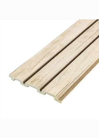 Стінові рейки WPC Опис: Стінові рейки WPC – будівельний матеріал для внутрішнього оздоблення, що імітує натуральну деревину. Фактура: гладка, імітація дерев'яної рейки Рейки складаються з наступних шарів: Полімерний шар, що захищає від потертостей та дрібних механічних пошкоджень, забезпечує довговічність використання, а УФ захист допомагає запобігти вигоранню, зберігаючи колір декоративного шару насиченим, за рахунок чого рейка довго має свій первісний естетичний вигляд. Декоративний шар: плівка з кольоровим друком високої роздільної здатності, яка повністю імітує фактуру природних матеріалів, завдяки чіткому та деталізованому зображенню. Основний шар WPC: є композитним матеріалом, який поєднує в собі деревні волокна (або стружку) з полімерними матеріалами, що забезпечує матеріалу міцність, стійкість до вологи і стійкість до впливу зовнішнього середовища. Температурний режим: від -50 º до +80 º С Застосування: внутрішні оздоблювальні роботи: декорування стін у всіх видах житлових приміщень (кухня, вітальня, дитяча або спальня, вхідна група) та комерційних приміщень (офісні приміщення, зони рецепцій, магазини, салони краси або фітнес-центри), декорування меблів, дверей та інших рівних поверхонь. Властивості та переваги матеріалу: Стійкість до вологи: матеріал WPC має високу стійкість до впливу вологи, не набухає і не деформується. Стійкість до гниття та комах: на відміну від деревини, WPC не схильний до гниття і не приваблює комах. Стійкість до впливу ультрафіолету: стінові панелі WPC зберігають свій колір та структуру під впливом ультрафіолетового випромінювання. Привабливий зовнішній вигляд: декоративний шар імітує натуральне дерево, що дозволяє створювати стильні та естетичні інтер'єри, знижуючи при цьому використання чистої деревини. Простота обслуговування: стінові панелі WPC зазвичай не потребують складного догляду. Вони не вимагають фарбування, обробки антисептиками та формальдегідами, зберігають свій зовнішній вигляд протягом тривалого часу. Розрахунок потрібної кількості матеріалу: Виміряйте довжину і висоту поверхні, що обклеюється. Помножте довжину на висоту кожної поверхні в метрах і складіть отримані результати, щоб отримати площу. Наприклад, після вимірів ви отримали:Довжина стіни 3,2м.Висота стіни 2,7м.3,2 * 2,7 = 8,64 м ² Площа, що вийшла, необхідно розділити на площу однієї рейки (150*3000= 0,45 м²) і округлити у більшу сторону: 8,64 / 0,45= 19,2 округляємо до 20.У процесі монтажу можуть виникнути відходи, пов'язані з різанням рейок, тому рекомендується додати до розрахунку запасні 1-2 шт. Інструкція з монтажу: Підготуйте поверхню, на яку кріпляться рейки. Їх можна встановлювати на оштукатурені стіни, гіпсокартонні плити та дерев'яні матеріали. Якщо стіна обклеєна шпалерами, рекомендуємо їх зняти. Для різання рейки використовуйте циркулярну пилку або лобзик. Прикріпити рейку до потрібної поверхні можна за допомогою монтажного клею, бажано на поліуретановій або силіконовій основі. Користуючись інструкцією нанести клей на задню частину рейки, після чого встановити на потрібну поверхню. Рейки можна збирати вертикально чи горизонтально. Крім монтажного клею можна використовувати будівельний степлер, щоб закріпити їх на стіні. Прикріплювати скоби необхідно до краю паза рейки, щоб вони не були видно. Необхідні для монтажу матеріали: рі