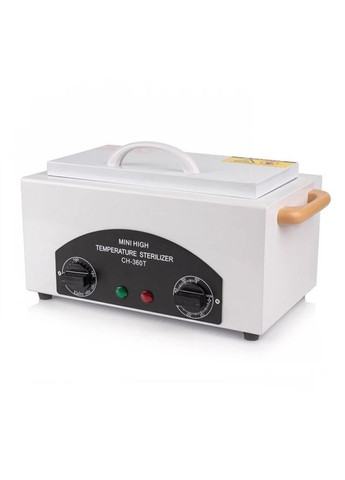 Сухожарова шафа CH-360T - це надійний сухожаровий стерилізатор, що працює за принципом термічної обробки. Він призначений для повної стерилізації металевих інструментів, що використовуються у манікюрі, медицині та косметології.Усередині камери встановлена спіраль, що нагріває повітря до заданої температури. Гарячий потік циркулює усередині, забезпечуючи 100% знезараження інструментів. Рекомендований режим: 180 ℃ протягом 60 хвилин. Особливості моделі: Висока ефективність Незважаючи на те, що ціна на CH-360T вища за середню, вона виправдана відмінною якістю складання та ефективністю стерилізації. Міцний та зручний корпус Корпус виконаний із термостійкого металу квадратної форми. Для безпечного переміщення під час роботи з обох боків передбачені дерев'яні ручки. Стійкі ніжки захищають поверхню від пошкоджень і не плавляться за високих температур. Інтуїтивно зрозуміле управління На передній панелі розташований дисплей із двома поворотними регуляторами: Температура – до 220 ℃ (зелений індикатор показує нагрівання). Час – до 60 хвилин (червоний індикатор сигналізує про роботу пристрою). Переваги: Повна стерилізація без хімії Просте та зрозуміле управління Можливість занурення інструментів цілком Підходить для роботи з крафт-пакетами. Інструкція із застосування: Розмістіть інструменти на металевому підносі (дозвіл). Вставте піднос у камеру, поєднавши отвори таця з вентиляційними. Закрийте кришку та підключіть стерилізатор до мережі. Встановіть температуру та час на панелі керування. Після закінчення процесу пролунає звуковий сигнал. Дочекайтеся охолодження приладу та вийміть тацю за допомогою спеціальних щипців (у комплекті). Порада: Використовуйте крафт-пакети – вони не заважають стерилізації та зручні для зберігання оброблених інструментів. Придбати їх можна у нашому інтернет-магазині. ⚠ Важливо: Перед першим використанням повністю зніміть захисну плівку з пристрою!