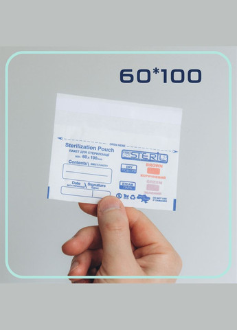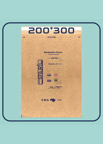 Крафт-пакети для стерилізації з індикатором виробляються з сульфатної целюлози, щільність 70 г/м2. На крафт-упаковці нанесені індикатори, що дозволяють відрізнити простерилізовані інструменти від нестерилізованих за рахунок зміни забарвлення. Якщо стерилізатор спрацював коректно, то зовнішні індикатори змінюють колір на той, який зазначений в еталоні, наприклад, бежевий стане фіолетовим. Індикатори наклеюються на ділянку крафт-пакета, доступний для візуального огляду. Після завершення циклу стерилізації індикаторна мітка кожного індикатора порівнюється з кольором еталону порівняння. Якщо на індикаторі відображається негативний результат контролю, то всі інструменти, оброблені в цьому циклі, вважають нестерильними. Особливість крафт-пакетів полягає в тому, що вони пропускають молекули повітря, але при цьому фільтрують бактерії та інші мікроорганізми. Після стерилізації при впливі високої температури мікроорганізми всередині пакету гинуть, а після закінчення обробки нові не надходять із зовнішнього середовища, що забезпечує збереження стерильності інструментів. Крафт-пакети для стерилізації використовуються для обробки інструментів повітряним методом (температура стерилізації складає 160-180С) і паровим (при температурах стерилізації при температурі 121-134С). Особливості • стійкість до вологи – пакет не промокає при контакті з паром і вологим середовищем, зберігає герметичність • збереження якості матеріалу при впливі високих температур, при цьому міцність і герметичність упаковки не втрачає якість • великий вибір розмірів і форм - дозволяє вибрати відповідний пакет для кожного інструмента • герметичні застібки: самоклеюча стрічка • відповідність вимогам ДСТУ • легка утилізація, не завдають шкоди навколишньому середовищу, оскільки крафт-матеріал швидко розкладається