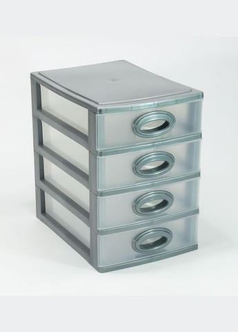 Мінікомод на 4 відділення. для зберігання дрібних виробів, біжутерії, канцелярії, дитячих речей тощо. Чотири шухляди однакового розміру 190х265мм Кілька мінікомодів можна поставити один на інший або комбінувати кількість ящиків, на свій розсуд, що дає змогу ефективно використовувати простір у стелажі або на письмовому столі. Комод легко розбирається й збирається без інструментів або спеціальних пристроїв Виготовлений із високоякісного пластику. Колір сірий Висота 270 Ширина 190 Довжина: 270