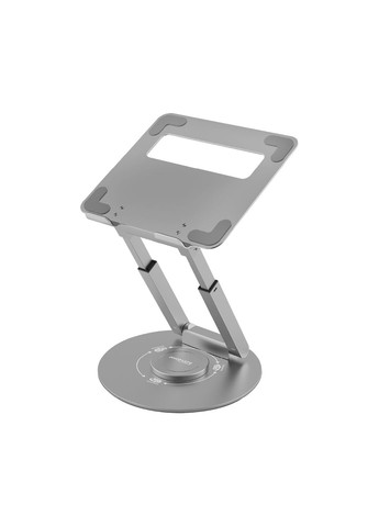 DeskMate-6 – покращена версія популярної підставки DeskMate-4 від Promate. Повертай ноутбук на 360⁰, регулюй кут нахилу та висоту, щоб з комфортом працювати навіть стоячи за столом. Особливості: - Регулювання висоти і кута нахилу: Два шарніра дозволяють виставити оптимальну висоту в діапазоні від 5 до 35 см і кут нахилу від 0⁰ до 90⁰ - Обертання на 360⁰: Завдяки спеціальній конструкції ти зможеш обертати підставку навколо осі - Функціональна конструкція: Антиковзні накладки в парі з прогумованими упорами захищають від подряпин і надійно фіксують ноутбук - Якісні матеріали: Підставка виготовлена з авіаційного алюмінієвого сплаву, завдяки чому відрізняється великим запасом міцності і малою вагою - Стильний дизайн: Аксесуар з легкістю впишеться в будь-який інтер’єр і стане ідеальним доповненням до твого ноутбука - Пасивне охолодження: Покращує забір повітря за рахунок отворів в підставці і положення ноутбука над поверхнею, а також створює теплове розсіювання завдяки алюмінієвій основі - Турбота про поставу: DeskMate-6 забезпечує комфортний кут огляду, сприяючи виробленню правильного сидячого положення