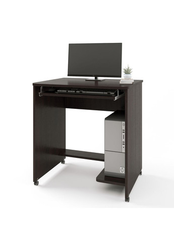 Стіл комп'ютерний Міні ультра Еверест венге темний (DTM-2639) Комп'ютерний стіл Міні ультра Еверест — це компактний та функціональний стіл, ідеальний для роботи з комп'ютером або ноутбуком. Завдяки елегантному кольору венге темний, стіл стане стильним доповненням до вашого інтер'єру. Це ідеальне рішення для невеликих приміщень, де важлива економія простору. Стіл має прямокутну форму та зручні розміри: ширина 70 см, глибина 50 см і висота 75 см. Він обладнаний висувною полицею для клавіатури і підставкою для системного блоку. Міцна стільниця з ДСП та коліщатка дозволяють зручно переміщувати стіл, що додає йому мобільності та зручності у використанні. Переваги Компактні розміри — ідеально підходить для невеликих кімнат або офісів Кольорове рішення венге темний — стильний дизайн для будь-якого інтер'єру Висувна полиця для клавіатури — зручність для роботи з комп'ютером Підставка для системного блоку — зручне розміщення комп'ютерної техніки Коліщатка — легкість у переміщенні столу Міцна стільниця з ДСП — довговічність та надійність Комп'ютерний стіл Міні ультра Еверест можна замовити в таких варіантах кольорів: Венге темний Дуб сонома Характеристики товару: Висота, см: 75 Глибина, см: 50 Колір: Венге темний Ширина, см: 70 Форма: Прямокутна Призначення: Для стаціонарного комп'ютера чи ноутбука Матеріал стільниці: ДСП Виробник ЛДСП: Swiss Krono Наявність висувної полиці для клавіатури: Так Наявність надбудови: Ні Наявність підставки під системний блок: Так Особливості: На коліщатках Регулювання за висотою: Ні Тип товару: Комп'ютерний стіл Товщина крайки, мм: 0,5 Артикул: 00000040076 Товщина фасаду, мм: 16
