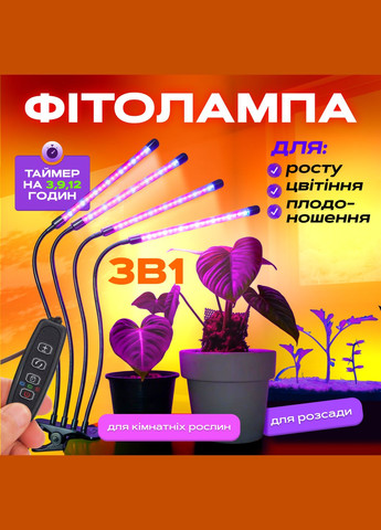 Фітолампа світлодіодна LED для рослин на прищіпці з пультом (FL-02) підійде аматорам і професіоналам для вирощування кімнатних і декоративних рослин, гідропонних культур, овочів і зелені, зокрема в теплицях. Використання фітолампи компенсує недостатнє природне освітлення для підтримки фотосинтезу, сприяє живленню та правильному розвитку на різних етапах - від саджанців до дорослих рослин. Випромінювана лампою довжина хвилі може повністю поглинатися рослинами для фотосинтезу Функціональність, особливості та переваги фітолампи світлодіодної LED для рослин (FL-02): 3 режими освітлення з різною довжиною хвилі. Технологія зачіпає всі етапи росту рослин, бутонізації та цвітіння. Світлодіодна лампа для вирощування рослин FL-02 оснащена спеціальними світлодіодами типу GROW, що випромінюють світло з двома довжинами хвиль: 660 нм (червоне світло) 460 нм (синє світло) комбінація вогнів (червоний + синій = фіолетовий). Широкі можливості налаштування і простота використання. Для використання LED фітолампи FL-02 не потрібно будь-яких спеціальних технічних навичок. Достатньо встановити лампу, під'єднати до USB-порту і ввімкнути її. Керувати режимами роботи лампи можна за допомогою перемикача на дроті або пульта ДУ. Доступні такі налаштування: регулювання інтенсивності освітлення (10 рівнів); установка кольору світіння (довжини хвиль); таймер: автоматичне вимкнення через 4, 8 або 12 годин роботи. Широкий і регульований кут освітлення на 360 градусів. Лампу оснащено чотирма гнучкими ніжками з LED модулями, завдяки чому ви зможете регулювати кут і висоту освітлення як завгодно, залежно від кількості та висоти рослин, площі розміщення. Кріплення у вигляді прищіпки дає можливість компактно розмістити лампу, закріпивши її на столі або вертикальній стійці поруч із рослинами, тощо - вам буде потрібно для цього мінімум площі. Характеристики: таймер: 4, 8 і 12 годин кількість діодів: 80 джерело живлення: USB водонепроникність: IP 65 гнучкі стійки випромінювальні кольори: червоний і синій тип світлодіода GROW: червоний - 660нм, синій - 460нм ресурс роботи світлодіодів: 50000 ч 4 діодні панелі кут нахилу до 360 градусів регулювання інтенсивності освітлення: 10 рівнів функція пам'яті налаштувань довжина цибулини: 14 см довжина гнучкого рукава: 39 см регулювання підставки: 73-153 см максимальні розміри: 195 х 120 см вага 1127 гр
