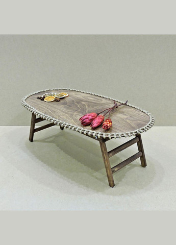 Дуже зручна річ, а також - ідея для подарунка! Можна використовувати як підставку для ноутбука, для подачі сніданку, для настільних ігор, для занять з дитиною, зручно взяти з собою в дорогу або на відпочинок на природі і т.д. Можна поставити на ліжко, що робить дуже зручним чаювання в ліжку або роботу за ноутбуком. При необхідності Ви можете його скласти або розкласти, що дозволить зробити собі максимальний комфорт. Матеріал: дерево. Розміри зовнішні: довжина - 50см, ширина - 35см, висота - 5см (в складеному стані). Висота до стільниці в розкладеному стані - 15см. Покриття: акриловий лак. Виріб ручної роботи та виготовлений виключно з натуральних, екологічно чистих матеріалів.