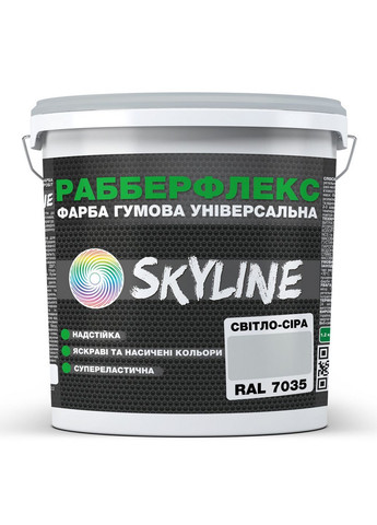 Фарба гумова універсальна «РабберФлекс» СкайЛайн (RubberFlex SkyLine) для застосування зовні та всередині приміщень, що має підвищену стійкість до механічних та атмосферних впливів, витримує будь-які перепади температур, стійка до впливу ультрафіолету та інфрачервоного випромінювання. Має високу паропроникність. Приємна в роботі, легко наноситься, не розтікається та не розбризкується. Має насичену однорідну консистенцію. Високоеластичний матеріал з відмінною адгезією до будь-яких поверхонь. Сфера застосування: Гумова фарба Рабберфлекс використовується для декоративного та захисного фарбування будь-яких зовнішніх та внутрішніх поверхонь, таких як шифер, ондулін, металочерепиця, а також керамічна глиняна, композитна черепиці, алюміній, оцинкована сталь, попередньо загрунтований чорний метал, профнастил, бетонні, газо- та пінобетонні поверхні, шлакоблок, ракушняк, цегла, оштукатурені, зашпакльовані основи, фанера, ДВП, ДСП, ЦСП, OSB, будь-які дерев'яні поверхні. Може наноситися на основи, пофарбовані раніше алкідними та олійними фарбами. Підійде як ніщо краще для фарбування дахів, фасадів будівель та споруд, цоколів, металевих водостічних труб та жолобів, цегляних, кам'яних кладок, мінеральних основ, стовпів, огорож, житлових та нежитлових приміщень – складів, ангарів тощо; ванних кімнат, кухонь, льохів та інших вологих приміщень; спортивних, медичних установ, залів, басейнів, торгових комплексів та багатьох інших місць різного призначення. Склад: вода, латекс акрилатний, консервант, добавки, пігменти, наповнювачі. Витрати: 100-200 г/м2 на один шар залежно від поверхні та її конфігурації. Спосіб нанесення:trong наноситься в 2-3 шари при температурах не нижче +10 пензлем, валиком або фарборозпилювачем. Колерування: База А і С за каталогами NCS і RAL. Клас стійкості до миття – 1 клас. Доступні фасування – 1.2 кг, 3.6 кг, 6 кг, 12 кг. Термін зберігання: 24 місяці *Колір продукції являється наближеним до каталогу RAL Для виключення відмінностей у відтінках кольору, при фарбуванні поверхонь рекомендується використовувати продукцію однієї партії. У випадку використання продукції різних партій необхідно проводити їх змішування. Для отримання насичених кольорів гумової фарби (жовтий, червоний, рожевий, помаранчевий, зелений, салатовий або блакитний), поверхня, що фарбується має бути однотонною. В іншому випадку може виникнути необхідність в нанесенні додаткових шарів. Для зменшення витрат колерованої (в насичений колір) фарби, поверхню необхідно попередньо пофарбувати базою А (Білою або колерованою в схожий пастельний відтінок). Основні Виробник: SkyLine; Країна виробник: Україна; Антисептична властивість: Ні; Аерозольна фарба: Ні; База під колеровку: BC; Без запаху: Так; Час висихання: 2 година; Кількість компонентів: Однокомпонентна; Максимальна робоча температура навколишнього середовища: 40 град.; Максимальна температура зберігання: 35 град.; Мінімальна робоча температура навколишнього середовища: 5 град.; Мінімальна температура зберігання: 5 град.; Миюча фарба: Так; Основа фарби: Латексная; Спосіб нанесення: Пензликом, Валіком, Механізований; Термін придатності: 24 міс; Ступінь блиску: Матова; Тип використання: Універсальний; Тип матеріалу, що фарбується: Пластик, Бетон, Дерево, Штукатурка, Метал, Шпалери, Цегла; Фактурна фарба: Ні; Колір: Сірий; Користувальницькі харак