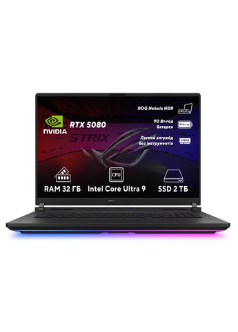 Діагональ екрану: 18"; Тип екрану: Mini LED; Частота оновлення екрану: 240 Гц; Процесор: Intel Core Ultra 9 275HX; Тип відеокарти: Дискретна; Операційна система: Windows 11 Pro