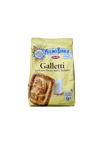 Традиційне італійське пісочне печиво Mulino Bianco Galletti з натуральним свіжим молоком 100% італійського походження — класика для сніданку та ароматної кави. Виготовлене з пшеничного борошна з сталого землеробства та без пальмової олії, це печиво поєднує ніжну текстуру, натуральний молочний аромат і легку хрусткість завдяки посипці кристалами цукру. Galletti — це справжній смак італійського ранку: простий, натуральний і щирий. Виробник Mulino Bianco (Barilla Group) гарантує високу якість, відбір сировини та екологічність упаковки. Основні переваги: • Оригінальне італійське печиво з натуральним свіжим молоком • Без пальмової олії, без консервантів і барвників • Зроблене з борошна від сталого землеробства • Ідеальне для сніданку, кави або чаю • Екологічна упаковка, придатна до переробки Характеристики: • Тип товару: пісочне печиво з молоком • Бренд: Mulino Bianco (Barilla Group) • Вага: 350 г • Смак: ніжний молочний із легкою солодкістю • Ключова дія / призначення: десерт або перекус до кави, молока, чаю • Країна виробник: Італія • Склад: пшеничне борошно, цукор, вершкове масло, свіже молоко (100% італійське), яйця, розпушувачі, сіль, кристали цукру для посипки • Поживна цінність (на 100 г): енергетична цінність 1953 кДж / 465 ккал, жири 17 г (з них насичені 4,8 г), вуглеводи 70 г (цукри 22 г), білки 7,5 г, сіль 0,55 г • Алергени: пшениця, молоко, яйця; може містити горіхи, сою, кунжут • Умови зберігання: зберігати у сухому, прохолодному місці Смаковий профіль: Легке, хрустке печиво з ніжним вершково-молочним смаком, збалансованою солодкістю та натуральним ароматом домашньої випічки. Поєднання: Ідеально смакує з еспресо, капучино, молоком або фруктовим йогуртом. Також підходить як основа для десертів або легкий перекус у дорозі. FAQ: Чи містить печиво пальмову олію? → Ні, без пальмової олії. Чи виготовлено з натурального молока? → Так, 100% італійське свіже молоко. Чи підходить для дітей? → Так, як частина збалансованого раціону. Чи упаковка екологічна? → Так, повністю придатна до переробки.