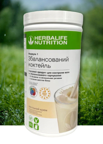 Протеїновий коктейль Формула 1 – продукт-бестселер у лінійці Herbalife Nutrition. Його унікальний склад допомагає організму отримати всі необхідні поживні речовини без споживання зайвих калорій. Його основний нутрієнт – білок – найважливіший будівельний матеріал нашого організму. Він бере участь практично у всіх внутрішніх процесах: сприяє формуванню та зміцненню м’язової маси, відіграє важливу роль у відновленні тканин, є джерелом енергії, а також надовго забезпечує відчуття ситості. Також у складі харчові волокна та комплекс із більш ніж 20 найважливіших вітамінів та мінералів, включаючи вітаміни B6, B12, D та C. Це збалансована їжа в склянці, якою можна замінити повноцінний прийом їжі, забезпечивши організм необхідним набором поживних речовин. Містить збалансовану комбінацію необхідних поживних речовин та готується всього за 2 хвилини! ПЕРЕВАГИ: Порція коктейля містить 17 г цінного білка. Збалансована їжа у склянці: білок, вітаміни, мінеральні речовини та харчові волокна Повноцінний прийом їжі за 2 хвилини. Основа програми зниження ваги Herbalife Nutrition. Високий вміст білка забезпечує відчуття ситості на кілька годин. Ефективність підтверджена клінічно Виготовляється з веганських інгредієнтів Не містить глютену Не має штучних барвників СМАК: Хрустке печиво ДІЯ: Біотин відіграє важливу роль у метаболізмі білків і жирів. Вітамін А покращує зір; необхідний для здоров’я кісток. Вітамін В6 відіграє важливу роль в метаболізмі білків, необхідний для здоров’я шкіри та нервової системи. Вітамін В12 має основні мінеральні елементи; необхідний для створення червоних кров’яних тілець. Вітамін С- антиоксидант; сприяє зміцненню імунітета і підтримці здоров’я шкіри. Вітамін D3- покращує засвоєння калія і фосфора, необхідних для зміцнення тканин кісток і зубів. Вітамін Е- антиоксидант, необхідний для нормального функціонування серця, м’язів нервової системи, системи кровообігу. Залізо відіграє ключову роль в кровообігу, так як воно необхідне для транспортування кисню червоними кров’яними тільцями. Калій сприяє підтримці водно-сольового балансу в клітинах і тканинах; особливо необхідний на програмі зниження ваги. Клітковина оптимізує процес травлення, сприяє очищенню організма від токсинів. Кальцій необхідний для міцності кісткової тканини і зубів, для нормального функціонування серця і м’язів. Магній- дуже важливий мінерал для м’язів, нервової системи, вироблення енергії, для підтримки здоров’я репродуктивної та імунної систем, для відновлення та оновлення тканин. Рибофлавін- покращує зір, приймає участь в процесі преретворення білків, жирів та вуглеводів в енергію. Тіамін приймає участь в синтезі енергії; необхідний для підтримки нервової системи. Фолієва кислота сприяє росту та відновленню клітин; особливо важлива для жінок в дітородному віці. СКЛАД: Рослинний білок – ізолят соєвого білка; Клітковина; Мінімальна кількість жирів. Більше 20 вітамінів та мінералів; близько 50% рекомендованого добового споживання вітамінів у 1 порції. Усього 200 ккал з урахуванням 250 мл молока 1,5% жирності СПОСІБ ВЖИВАННЯ: Дорослим розмішати 2 столові ложки продукту (26 г) у 250 мл знежиреного молока (1,5% жирності). РЕКОМЕНДАЦІЇ: - для збалансованого харчування і контролю ваги: замініть один основний прийом їжі на день протеїновим коктейлем Формула 1. Класично н
