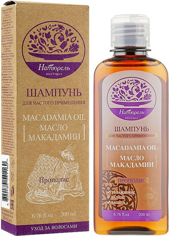 Прекрасний шампунь для волосся з олією макадамії і прополісом від відомої української торгової марки «Натюрель boutique». Завдяки виключно натуральним компонентам продукт не тільки дуже корисний, а також допоможе вам зняти втому і стрес після важкого трудового дня. Вже після декількох застосувань ви помітите, що ваші локони стануть набагато слухнянішими і красивими. Унікальна формула шампуню, розроблена спеціально для тонких і сухих локонів, прекрасно підходить усім типам волосся і стане ідеальним засобом для щоденного використання. Завдяки активним компонентам продукт відновлює слабкі пасма зсередини, живлячи їх усіма необхідними мінералами і вітамінами. Шампунь прекрасно підійде для догляду за чутливою шкірним покривом голови. Засіб ретельно очистить пасма і дбайливо подбає про дерму. Завдяки екстрактам трав, продукт стимулює ріст кучерів, живлячи волосяну цибулину. Шампунь надійно захистить ваші локони від несприятливих факторів навколишнього середовища і додасть їм життєвої сили і доглянутого вигляду. Спосіб застосування: нанести масажними рухами на вологе й чисте волосся, ретельно змити водою.
