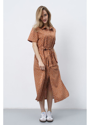 Сукня-сорочка міді — це втілення effortless стилю, який завжди доречний у теплу пору року. Модель виконана з легкої, дихаючої тканини у природньому кольорі з невимушеним квітковим принтом — поєднання, що додає жіночності та вишуканості образу. Короткий рукав забезпечує комфорт у спекотні дні, а деревʼяні ґудзики по всій довжині додають виробу природного шарму. Виріб має розслаблений силует, що легко регулюється за допомогою паска з такої ж тканини — ви можете носити сукню як з акцентом на талії, так і у вільному, невимушеному варіанті. По боках внизу — розрізи, які не лише надають вільності рухам, а й підкреслюють жіночність крою. Додатковий плюс — функціональні кишені, які додають практичності й комфорту. Ця сукня — готовий образ сама по собі, але її легко стилізувати. Носіть її з мінімалістичними сандалями або кедами, капелюхом із соломи та великою торбою для міських прогулянок. Для більш зібраного образу додайте еспадрилії на танкетці, легку джинсову куртку або плетений пояс. Можна також носити як легке пальто поверх майки та шортів — варіантів безліч. Параметри моделі: Зріст: 168 см Груди: 90 см Талія: 60 см Стегна: 90 см На моделі розмір: S Склад: 100% бавовна