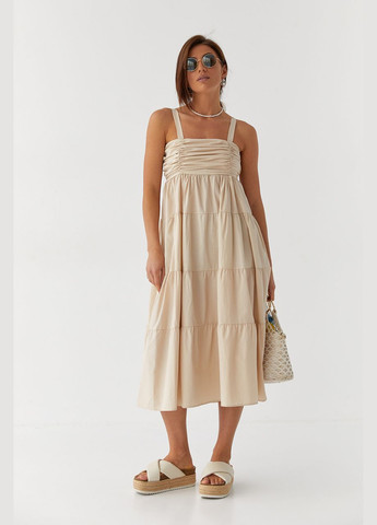 Ця сукня – чудовий вибір для створення жіночного та невимушеного образу. Вона гармонійно поєднується як із класичним взуттям на підборах, так і з більш розслабленими варіантами на низькому ходу. Незалежно від приводу, ви завжди виглядатимете стильно та елегантно.